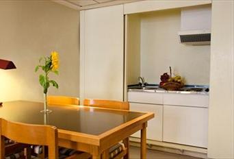 Kleine kitchenette (2 kookplaten, kleine koelkast / minibar en magnetron op verzoek (gratis!); beperkt kook- en eetgerei.