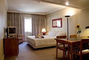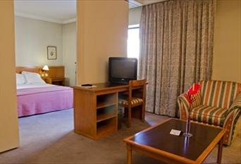 Elegante, zeer aangename living met zithoek (bank en fauteuil), tafel en stoelen, bureauhoek; ktv (satelliet), telefoon (direct), muziek, gratis WiFi-internet, kluisje, koelkast en minibar;