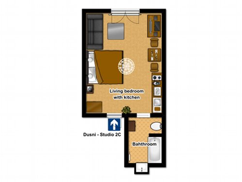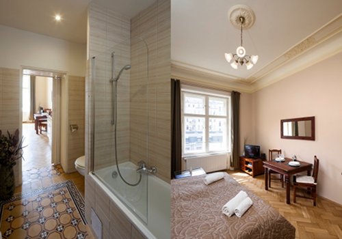 Omdat deze studio in hartje centrum ligt, hebt u hier alle historische monumenten en bezienswaardigheden op loopafstand: het beroemde Wenceslasplein, de Karelsbrug, het Joodse Kerkhof - aan de overkant van de Moldau - de Praagse burcht Hradcany met o.a. de St. Vithus-Dom en het Gouden Straatje. Centraal station Hlavni Nadrazki ligt op 2 haltes.