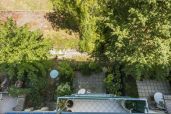 - Terras en kleine tuin met tuinmeubelen en zonnescherm;